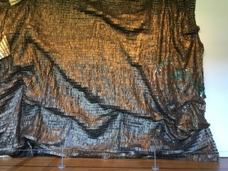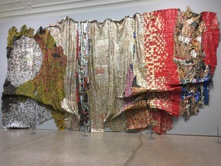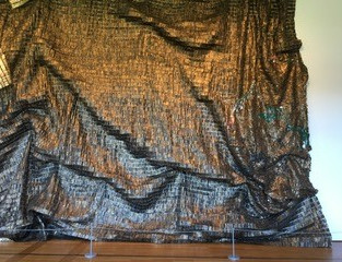 El Anatsu im Kunsthaus Bern Die Werke des Westafrikaners El Anatsu vergisst man nie mehr, wenn man sie geschaut hat, behaupte ich mal. 2019 war das, an der Biennale von Venedig im Pavillon des erstmals teilnehmenden Ghana (nachdem er 2015 schon mit dem Goldenen Löwen ausgezeichnet worden war) – und dann in Bern. Welche Überraschung und Freude. Die riesigen Gewebe aus Aludeckeln von Bier- oder Rumflaschen sind wunderbare Kompositionen von Farben und Formen aus Tausenden von Teilchen, mit Kupferdraht verbunden. Die bis zu geschätzten 50 m2 grossen metallenen Geweben sind in Falten gelegt oder hängen in Bahnen, der «flower garden» liegt riesig ausgebreitet auf dem Boden. Es leuchtet und schimmert je nach Lichteinfall und entfaltet eine betörende Kostbarkeit. El Anatsu beschäftigt in Nigeria, wo er arbeitet und lehrt, Dutzende von Mitarbeitenden, um auszuführen was er entwirft und komponiert. Die Ausstellung in Bern zeigt Werke aus dem gesamten 50-jährigen Schaffen des Künstlers, neben den monumentalen Geweben auch Skulpturen und Reliefschnitzereien aus afrikanischen Hölzern, Terrakottafiguren, Zeichnungen und Drucke. In der sehr informativen Ausstellungsbroschüre wird das vielseitige Werk von El Anatsu so zusammengefasst: «In seinen Händen werden Licht, Form, Farbigkeit, Transparenz und Körperlichkeit eins und münden in aufsehenerregende, inspirierende und triumphale Werke.» Und das ist nicht übertrieben! (bis 1.11.2020)